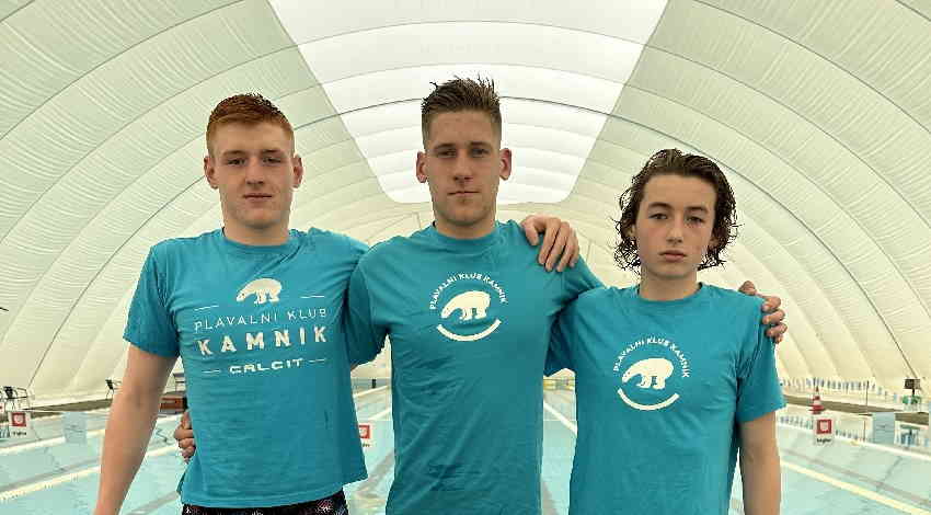Nik Peterlin, Gašper Stele in Rok Vejnovič, so se udeležili daljinskega plavanja v Radovljici, dne…